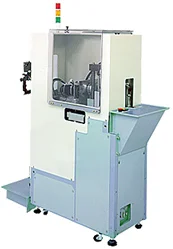 This high speed coil winder has been developed using the NITTOKU-made, compact FA controller. By using a 180° indexing mechanism, core loading can be performed in parallel with the coil winding process. Furthermore, the tool transfer loading method is used on the indexer. Production on the KIO machine results in consistent winding profiles and high quality products.